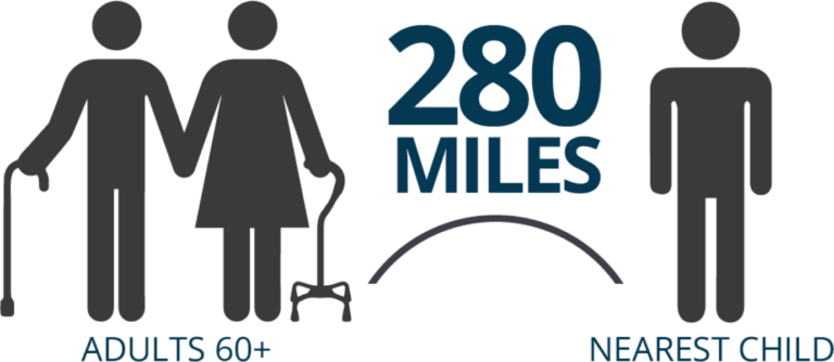The distance between family members is growing. Adult children are no longer choosing to stay close to home as they build their own lives and families. The ratio of family caregivers to those over the age of 80 is on the decline.